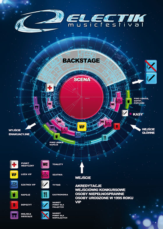 Głównym wejściem na teren eventu będzie wejście od ulicy Głogowskiej. Otwarcie bram wejścia VIP: 17:00 - 24:00 Wejście dla VIP'ów, osób niepełnosprawnych, osób posiadających bilety konkursowe, osób urodzonych w 95 roku, oraz dla akredytowanych, będzie czynne od godziny 17:00 do 24:00.