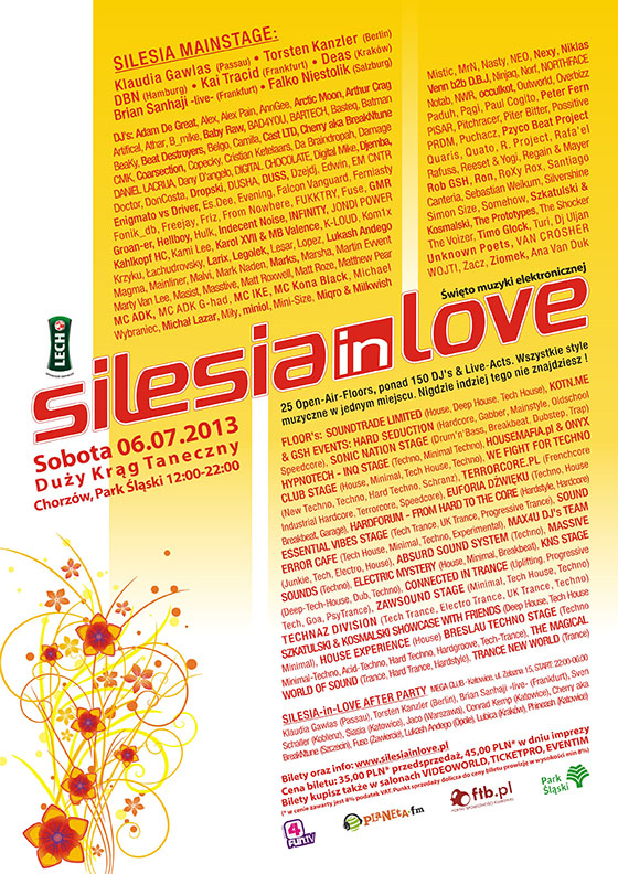 SILESIA MAINSTAGE 1. Klaudia Gawlas (Passau) 2. Torsten Kanlzer (Berlin) 3. DBN (Hamburg) 4. Kai Tracid (Frankfurt) 5. Brian Sanhaji -live-(Frankfurt) 6. Falko Niestolik (Salzburg) 7. Deas (Kraków)