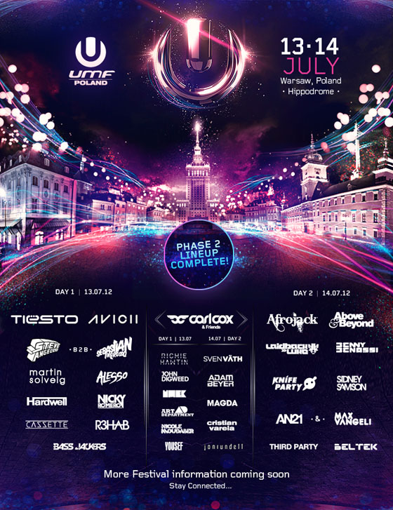 UMF nareszcie dotarł do Europy. Organizatorzy polskiej edycji właśnie ogłosili line-up na to wydarzenie, które odbędzie się 13-14 lipca w Warszawie. UMF Miami słynie ze swoich imponujących instalacji scenicznych oraz i zapierających dech w piersiach efektów audiowizualnych. Najlepsi dj’e grający w jednym miejscu, na kilku scenach. Gościem specjalnym tegorocznej edycji była Madonna, która pojawiła się na scenie podczas występu Avicii. Tego roku ponad 200.000 fanów każdego podgatunku muzyki elektronicznej, przybyło na ten legendarny festiwal w Miami. UMF Poland szykuje w Warszawie wydarzenie równie niezapomniane jak w USA. Oszałamiająca muzyka, zaskakujący goście, doskonałe imprezy klubowe towarzyszące festiwalowi oraz dwa dni nieprzerwanego tańca!