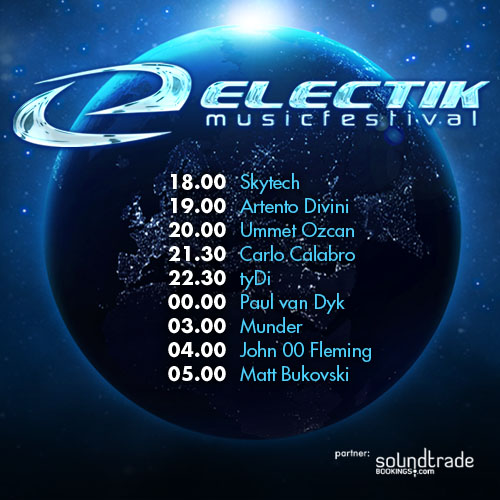 Dodatkowo całą atmosferę podgrzeje przyprawiający o gęsią skórkę, wyjątkowo widowiskowy show wizualny połączony z pokazem pirotechnicznym o skali i rozmachu, z jakimi jeszcze nigdy nie spotkaliśmy się w całej historii polskich imprez masowych! Jako zespół „ELECTIK MUSIC FESTIVAL”, wierzymy, że spotkamy się razem tamtego wyjątkowego wieczoru i wspólnie będziemy celebrować to wspaniałe święto muzyki Trance.